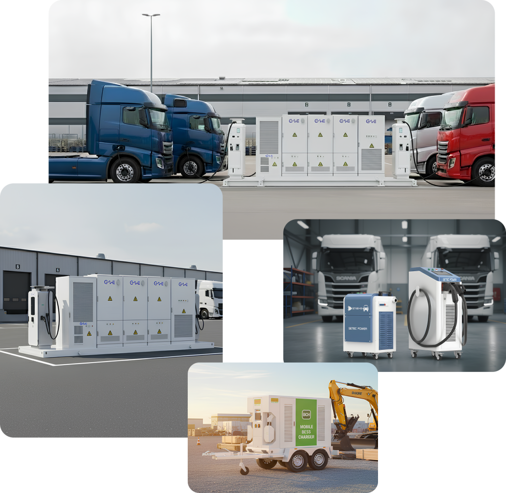 Découvrez nos 3 solutions de recharge électrique pour vos véhicules lourds et engins quel que soit votre besoin. Au dépôt, en atelier ou sur chantier, rechargez où que vous soyez même lorsque votre connexion électrique est de faible puissance.